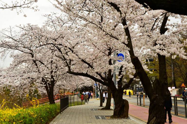 서울 봄꽃 여행지의 대표, 여의도 윤중로 벚꽃길에서 낭만적인 벚꽃 산책을 즐겨보세요.